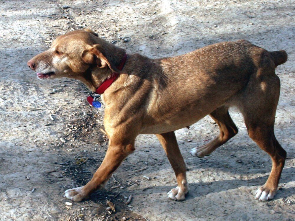 Genny came into Vizsla Rescue from KS. She was a member of the KS 8 who came into rescue as a result of a KS Animal Health Dept raid. She was approximately 4 yrs old. There were 7 purebred Vizslas and one Vizsla/Brittany mix. They were all taken immediately to our vet to have all their vet work done including spay. Genny made the trip from KS to CO on February 23rd and went to her new foster family for evaluation. Genny survived a horrible situation. We referred to her as disguising herself as a Vizsla so she could be rescued with all the others.